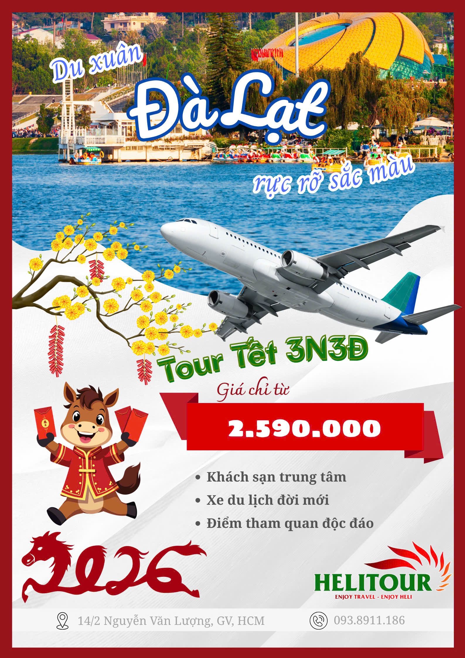 Helitour xin giới thiệu đến du khách tour du lịch Đà Lạt Tết nguyên đán 2026 với nhiều ưu đãi hấp dẫn nhân dịp du xuân đầu năm. Liên hệ Helitour để nhận giá khuyến mãi khi đăng ký nhóm, gia đình.